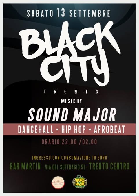 in centro a Trento. È BLACK CITY alBar Martin in Viale Suffragio dalle 22 alle 2. Ingresso 10 euro con consumazione. New International party in Town…nah miss it ![]()
